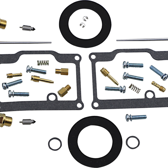 Caracteristicas: Kit includes all necessary O-rings, gaskets, jets, needle, mixture screw, float bowl screws, float valve needle and seat (needle jet and other pressed-in jets are not included in kit) NBR rubber material is used on all O-rings and rubber gaskets; NBR has excellent resistance to the ethanol used in today's fuels Applications that use paper float bowl gaskets are upgraded to High Performance Interference Gasket material Models with multiple carburetors include components to repair all carburetors OEM jet sizes and slide needles are included in the kit