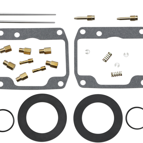 Caracteristicas: Kit includes all necessary O-rings, gaskets, jets, needle, mixture screw, float bowl screws, float valve needle and seat (needle jet and other pressed-in jets are not included in kit) NBR rubber material is used on all O-rings and rubber gaskets; NBR has excellent resistance to the ethanol used in today's fuels Applications that use paper float bowl gaskets are upgraded to High Performance Interference Gasket material Models with multiple carburetors include components to repair all carburetors OEM jet sizes and slide needles are included in the kit