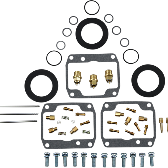Caracteristicas: Kit includes all necessary O-rings, gaskets, jets, needle, mixture screw, float bowl screws, float valve needle and seat (needle jet and other pressed-in jets are not included in kit) NBR rubber material is used on all O-rings and rubber gaskets; NBR has excellent resistance to the ethanol used in today's fuels Applications that use paper float bowl gaskets are upgraded to High Performance Interference Gasket material Models with multiple carburetors include components to repair all carburetors OEM jet sizes and slide needles are included in the kit