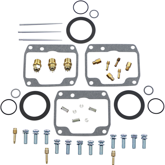 Caracteristicas: Kit includes all necessary O-rings, gaskets, jets, needle, mixture screw, float bowl screws, float valve needle and seat (needle jet and other pressed-in jets are not included in kit) NBR rubber material is used on all O-rings and rubber gaskets; NBR has excellent resistance to the ethanol used in today's fuels Applications that use paper float bowl gaskets are upgraded to High Performance Interference Gasket material Models with multiple carburetors include components to repair all carburetors OEM jet sizes and slide needles are included in the kit