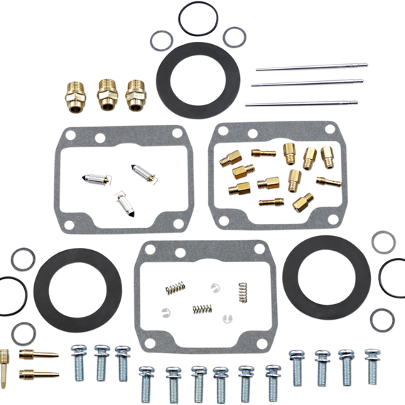 Caracteristicas: Kit includes all necessary O-rings, gaskets, jets, needle, mixture screw, float bowl screws, float valve needle and seat (needle jet and other pressed-in jets are not included in kit) NBR rubber material is used on all O-rings and rubber gaskets; NBR has excellent resistance to the ethanol used in today's fuels Applications that use paper float bowl gaskets are upgraded to High Performance Interference Gasket material Models with multiple carburetors include components to repair all carburetors OEM jet sizes and slide needles are included in the kit
