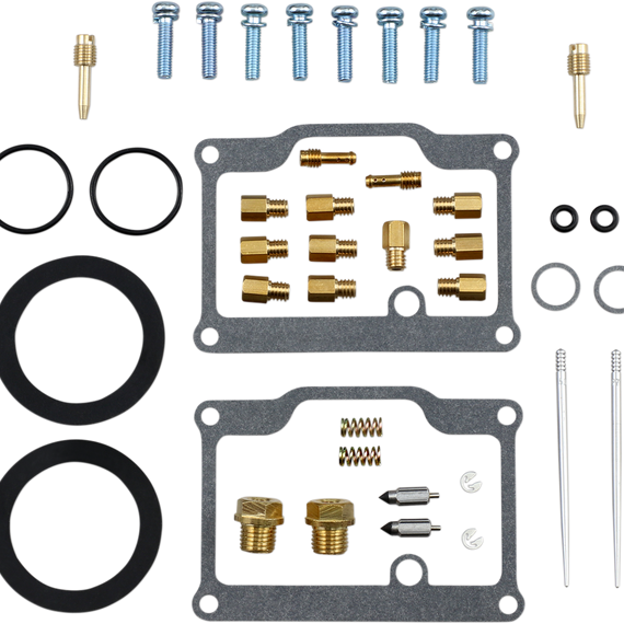 Caracteristicas: Kit includes all necessary O-rings, gaskets, jets, needle, mixture screw, float bowl screws, float valve needle and seat (needle jet and other pressed-in jets are not included in kit) NBR rubber material is used on all O-rings and rubber gaskets; NBR has excellent resistance to the ethanol used in today's fuels Applications that use paper float bowl gaskets are upgraded to High Performance Interference Gasket material Models with multiple carburetors include components to repair all carburetors OEM jet sizes and slide needles are included in the kit