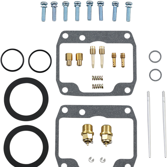 Caracteristicas: Kit includes all necessary O-rings, gaskets, jets, needle, mixture screw, float bowl screws, float valve needle and seat (needle jet and other pressed-in jets are not included in kit) NBR rubber material is used on all O-rings and rubber gaskets; NBR has excellent resistance to the ethanol used in today's fuels Applications that use paper float bowl gaskets are upgraded to High Performance Interference Gasket material Models with multiple carburetors include components to repair all carburetors OEM jet sizes and slide needles are included in the kit