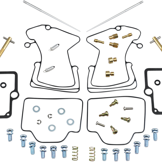Caracteristicas: Kit includes all necessary O-rings, gaskets, jets, needle, mixture screw, float bowl screws, float valve needle and seat (needle jet and other pressed-in jets are not included in kit) NBR rubber material is used on all O-rings and rubber gaskets; NBR has excellent resistance to the ethanol used in today's fuels Applications that use paper float bowl gaskets are upgraded to High Performance Interference Gasket material Models with multiple carburetors include components to repair all carburetors OEM jet sizes and slide needles are included in the kit
