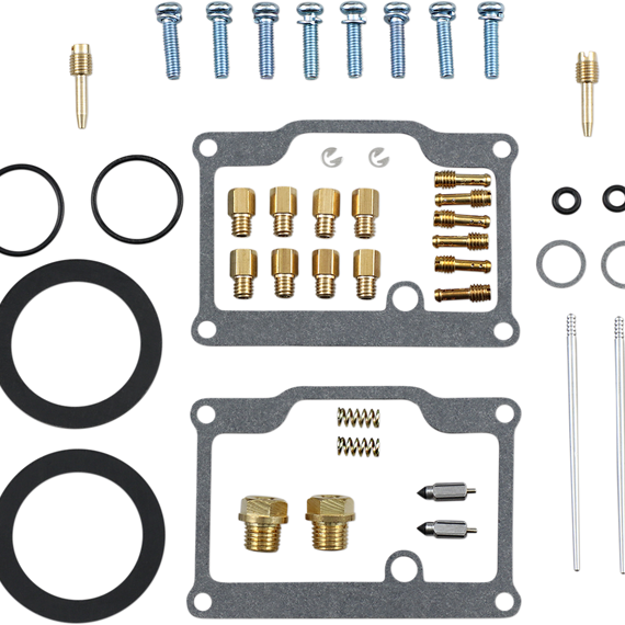 Caracteristicas: Kit includes all necessary O-rings, gaskets, jets, needle, mixture screw, float bowl screws, float valve needle and seat (needle jet and other pressed-in jets are not included in kit) NBR rubber material is used on all O-rings and rubber gaskets; NBR has excellent resistance to the ethanol used in today's fuels Applications that use paper float bowl gaskets are upgraded to High Performance Interference Gasket material Models with multiple carburetors include components to repair all carburetors OEM jet sizes and slide needles are included in the kit