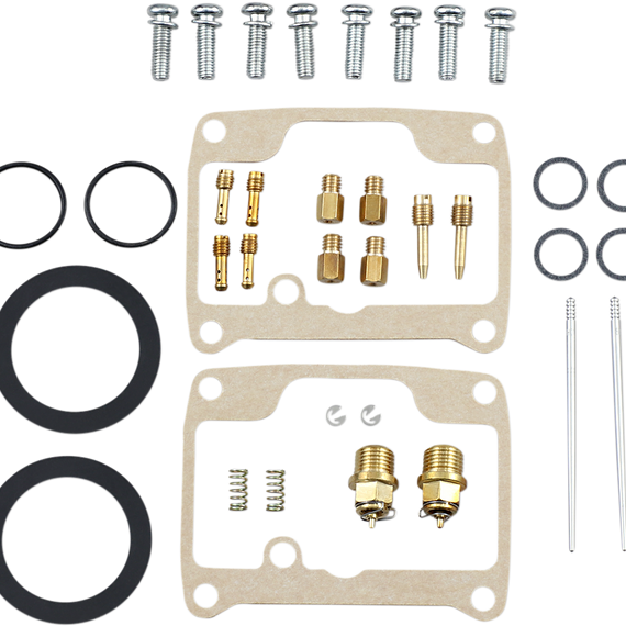 • Kit includes all necessary O-rings, gaskets, jets, needle, mixture screw, float bowl screws, float valve needle and seat (needle jet and other pressed-in jets are not included in kit)