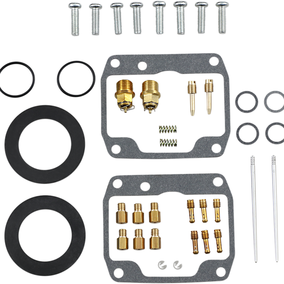 Caracteristicas: Kit includes all necessary O-rings, gaskets, jets, needle, mixture screw, float bowl screws, float valve needle and seat (needle jet and other pressed-in jets are not included in kit) NBR rubber material is used on all O-rings and rubber gaskets; NBR has excellent resistance to the ethanol used in today's fuels Applications that use paper float bowl gaskets are upgraded to High Performance Interference Gasket material Models with multiple carburetors include components to repair all carburetors OEM jet sizes and slide needles are included in the kit