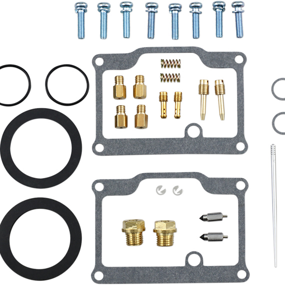 Caracteristicas: Kit includes all necessary O-rings, gaskets, jets, needle, mixture screw, float bowl screws, float valve needle and seat (needle jet and other pressed-in jets are not included in kit) NBR rubber material is used on all O-rings and rubber gaskets; NBR has excellent resistance to the ethanol used in today's fuels Applications that use paper float bowl gaskets are upgraded to High Performance Interference Gasket material Models with multiple carburetors include components to repair all carburetors OEM jet sizes and slide needles are included in the kit