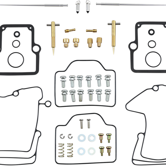 Caracteristicas: Kit includes all necessary O-rings, gaskets, jets, needle, mixture screw, float bowl screws, float valve needle and seat (needle jet and other pressed-in jets are not included in kit) NBR rubber material is used on all O-rings and rubber gaskets; NBR has excellent resistance to the ethanol used in today's fuels Applications that use paper float bowl gaskets are upgraded to High Performance Interference Gasket material Models with multiple carburetors include components to repair all carburetors OEM jet sizes and slide needles are included in the kit