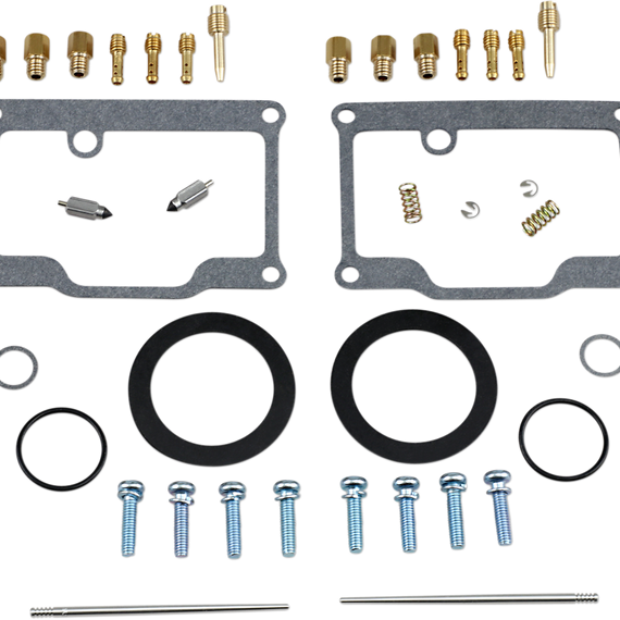Caracteristicas: Kit includes all necessary O-rings, gaskets, jets, needle, mixture screw, float bowl screws, float valve needle and seat (needle jet and other pressed-in jets are not included in kit) NBR rubber material is used on all O-rings and rubber gaskets; NBR has excellent resistance to the ethanol used in today's fuels Applications that use paper float bowl gaskets are upgraded to High Performance Interference Gasket material Models with multiple carburetors include components to repair all carburetors OEM jet sizes and slide needles are included in the kit