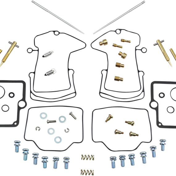 Caracteristicas: Kit includes all necessary O-rings, gaskets, jets, needle, mixture screw, float bowl screws, float valve needle and seat (needle jet and other pressed-in jets are not included in kit) NBR rubber material is used on all O-rings and rubber gaskets; NBR has excellent resistance to the ethanol used in today's fuels Applications that use paper float bowl gaskets are upgraded to High Performance Interference Gasket material Models with multiple carburetors include components to repair all carburetors OEM jet sizes and slide needles are included in the kit