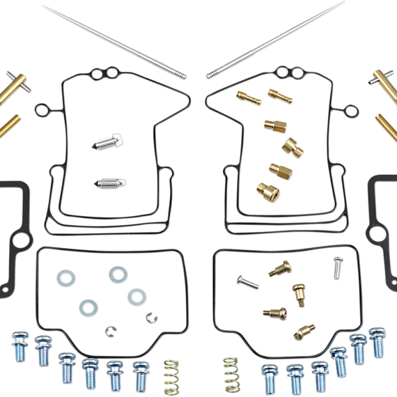 Caracteristicas: Kit includes all necessary O-rings, gaskets, jets, needle, mixture screw, float bowl screws, float valve needle and seat (needle jet and other pressed-in jets are not included in kit) NBR rubber material is used on all O-rings and rubber gaskets; NBR has excellent resistance to the ethanol used in today's fuels Applications that use paper float bowl gaskets are upgraded to High Performance Interference Gasket material Models with multiple carburetors include components to repair all carburetors OEM jet sizes and slide needles are included in the kit