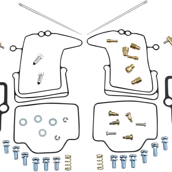 Caracteristicas: Kit includes all necessary O-rings, gaskets, jets, needle, mixture screw, float bowl screws, float valve needle and seat (needle jet and other pressed-in jets are not included in kit) NBR rubber material is used on all O-rings and rubber gaskets; NBR has excellent resistance to the ethanol used in today's fuels Applications that use paper float bowl gaskets are upgraded to High Performance Interference Gasket material Models with multiple carburetors include components to repair all carburetors OEM jet sizes and slide needles are included in the kit
