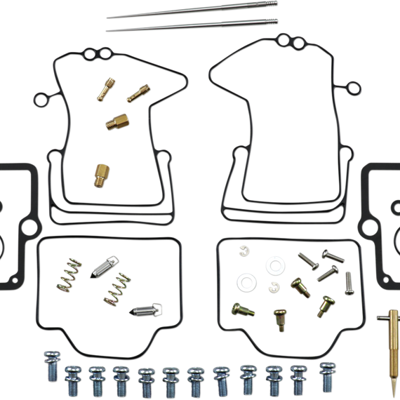 Caracteristicas: Kit includes all necessary O-rings, gaskets, jets, needle, mixture screw, float bowl screws, float valve needle and seat (needle jet and other pressed-in jets are not included in kit) NBR rubber material is used on all O-rings and rubber gaskets; NBR has excellent resistance to the ethanol used in today's fuels Applications that use paper float bowl gaskets are upgraded to High Performance Interference Gasket material Models with multiple carburetors include components to repair all carburetors OEM jet sizes and slide needles are included in the kit