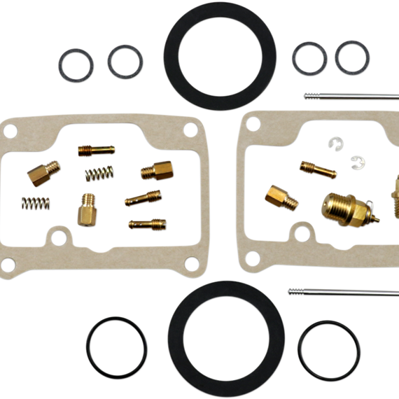 Caracteristicas: Kit includes all necessary O-rings, gaskets, jets, needle, mixture screw, float bowl screws, float valve needle and seat (needle jet and other pressed-in jets are not included in kit) NBR rubber material is used on all O-rings and rubber gaskets; NBR has excellent resistance to the ethanol used in today's fuels Applications that use paper float bowl gaskets are upgraded to High Performance Interference Gasket material Models with multiple carburetors include components to repair all carburetors OEM jet sizes and slide needles are included in the kit