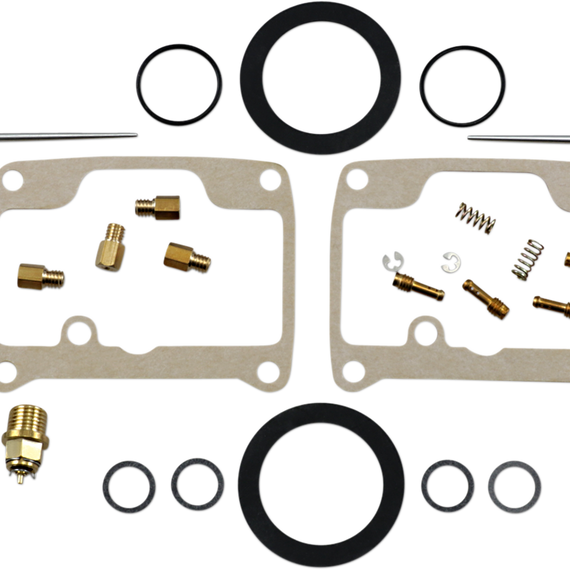 Caracteristicas: Kit includes all necessary O-rings, gaskets, jets, needle, mixture screw, float bowl screws, float valve needle and seat (needle jet and other pressed-in jets are not included in kit) NBR rubber material is used on all O-rings and rubber gaskets; NBR has excellent resistance to the ethanol used in today's fuels Applications that use paper float bowl gaskets are upgraded to High Performance Interference Gasket material Models with multiple carburetors include components to repair all carburetors OEM jet sizes and slide needles are included in the kit