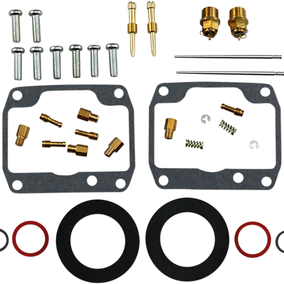 Caracteristicas: Kit includes all necessary O-rings, gaskets, jets, needle, mixture screw, float bowl screws, float valve needle and seat (needle jet and other pressed-in jets are not included in kit) NBR rubber material is used on all O-rings and rubber gaskets; NBR has excellent resistance to the ethanol used in today's fuels Applications that use paper float bowl gaskets are upgraded to High Performance Interference Gasket material Models with multiple carburetors include components to repair all carburetors OEM jet sizes and slide needles are included in the kit