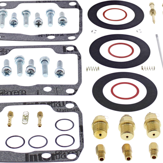 Caracteristicas: Kit includes all necessary O-rings, gaskets, jets, needle, mixture screw, float bowl screws, float valve needle and seat (needle jet and other pressed-in jets are not included in kit) NBR rubber material is used on all O-rings and rubber gaskets; NBR has excellent resistance to the ethanol used in today's fuels Applications that use paper float bowl gaskets are upgraded to High Performance Interference Gasket material Models with multiple carburetors include components to repair all carburetors OEM jet sizes and slide needles are included in the kit