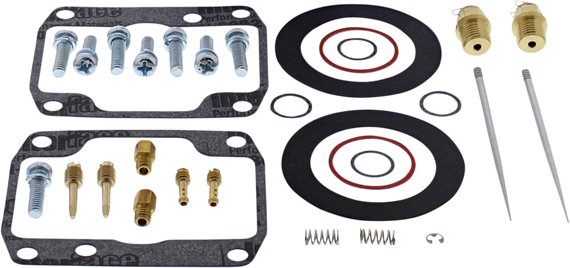 Caracteristicas: Kit includes all necessary O-rings, gaskets, jets, needle, mixture screw, float bowl screws, float valve needle and seat (needle jet and other pressed-in jets are not included in kit) NBR rubber material is used on all O-rings and rubber gaskets; NBR has excellent resistance to the ethanol used in today's fuels Applications that use paper float bowl gaskets are upgraded to High Performance Interference Gasket material Models with multiple carburetors include components to repair all carburetors OEM jet sizes and slide needles are included in the kit