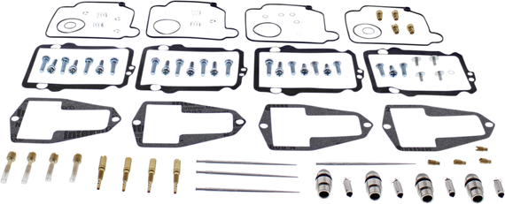 • Kit includes all necessary O-rings, gaskets, jets, needle, mixture screw, float bowl screws, float valve needle and seat (needle jet and other pressed-in jets are not included in kit)