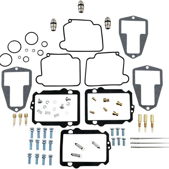 • Kit includes all necessary O-rings, gaskets, jets, needle, mixture screw, float bowl screws, float valve needle and seat (needle jet and other pressed-in jets are not included in kit)