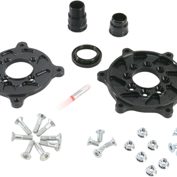 Caracteristicas: Carrier Ring Sets are the key components of the Pro Series System Modular carriers allow riders to quickly and easily alternate their wheel/tire race sets for different track surface Fronts include carrier ring adapter and all necessary spacers and hardware to mount OE-type brake rotor; rears include carrier ring adapters (2) and all spacers and hardware to mount OE-type brake rotor and drive sprocket