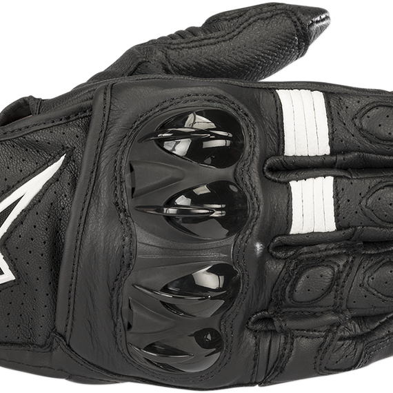 Caracteristicas: Durable, multi-panel main shell construction incorporating a supple full-grain goat leather for high levels of comfort, abrasion resistance and breathability Alpinestars race-proven hard Polyurethane (PU) knuckle protection system for superior impact and abrasion resistance Leather palm construction incorporates padding reinforcements on landing zone for excellent durability and comfort. Highly durable advance poly-fabric reinforcements on side of hand, pinky and ring finger, forming a finger bridge to prevent finger roll and separation during impacts Perforated leather on backhand for cooling performance Open knuckle gusset for improve levels of breathability and hand flexibility Ergonomic stretch insert between thumb and palm offers flexibility to vastly improve hand movement
