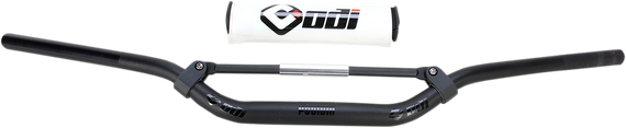 Caracteristicas: Utilizing our Controlled Flex Technology, the CFT crossbar allows the handlebar to naturally flex at a controlled rate, providing reduced vibration and rider fatigue Controlled Flex Technology crossbar with built-in elastomer for lower vibration Constructed of high-strength seamless double-butted 2014-T6 alloy Each handlebar shot-peened and hard anodized for improved durability Oversized 1-1/8” clamp diameter improves bar/clamp grip (requires “oversized” bar mounts) Ti-colored clamps, crossbar connector and matching ODI graphics Lightly knurled left slide helps grip bar adhesion, without interfering with Lock-On Grips