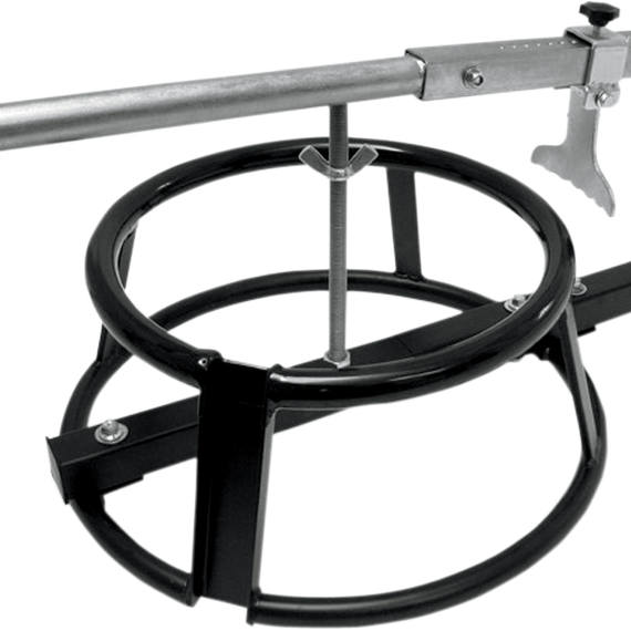 Caracteristicas: Makes tire changing a breeze Fits most motorcycle wheels from 16" to 21" in diameter Great for shop or portable enough for track use Solid wide base makes for solid foundation during use while rubber-coated top ring helps protect wheel from scratching Adjustable bead popper Center post with wing nut keeps rim locked down during procedure
