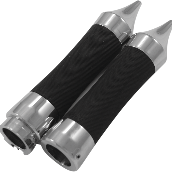 Caracteristicas: CNC-machined billet aluminum grips Same as regular Dead End grips but with an added knurled rubber grip surface Mounting hardware included Made in the U.S.A.
