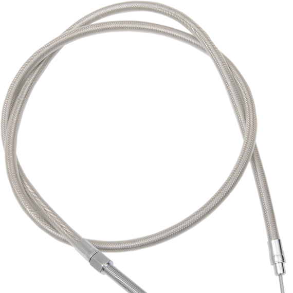 Caracteristicas: Low effort, maximum efficiency cable design meets or exceeds all OEM specifications for fitment, construction and endurance requirements Cables feature chrome-plated fittings, stainless-steel braided outer casings, tempered-steel inner wire and a nylon inner sleeve for smooth operation Braiding is coated with a non-yellowing clear coating for abrasion resistance High-performance cables use the latest technology of longitudinally winding the outer housing lengthwise rather than spirally so cable bends in a more natural arc and eliminates spring and compression Late-style cables are measured with the adjuster completely collapsed Adjuster measured from bottom of cable