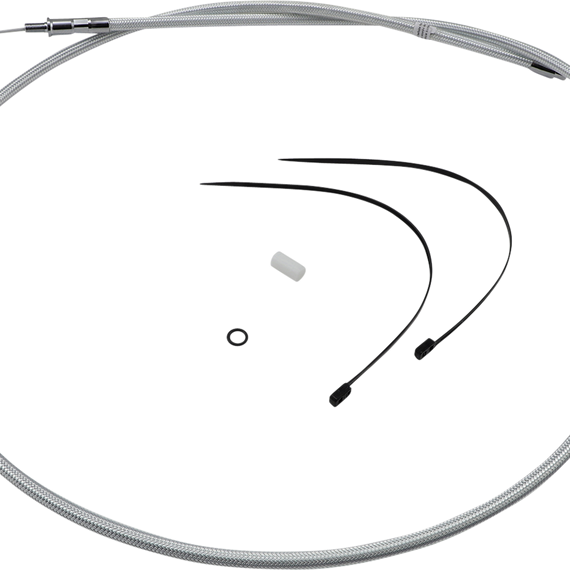 Caracteristicas: Sterling Chromite® II uses patented technology to look like chrome Braid color and weave match on all Magnum control cables and brake lines Coated with a non-yellowing, crystal clear FEP fluoropolymer outer jacket for exceptional protection against scuffing paint or chrome Low-effort, high-efficiency cable design meets or exceeds all OE specifications for fitment, construction, and endurance All fittings are polished and chrome plated Attractive adjuster with integrated water resistant seals does not require a boot Rubber seal in transmission fitting eliminates fluid leaks All cables are factory lubricated for smooth, consistent, long-lasting operation Assembled in the U.S.A. Late style cables are measured with the adjuster completely collapsed