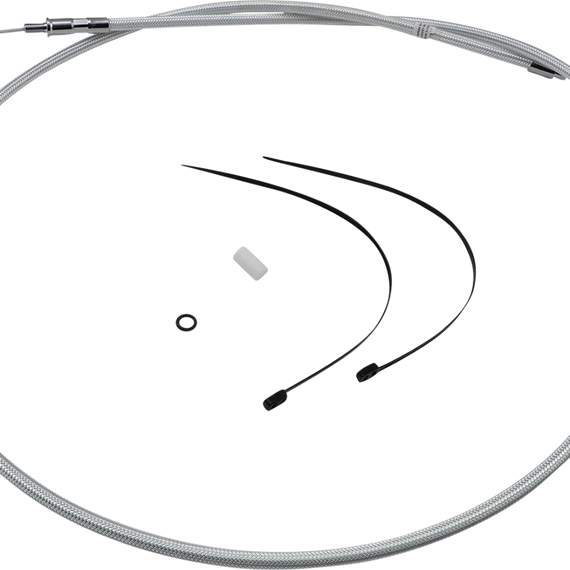 Caracteristicas: Sterling Chromite® II uses patented technology to look like chrome Braid color and weave match on all Magnum control cables and brake lines Coated with a non-yellowing, crystal clear FEP fluoropolymer outer jacket for exceptional protection against scuffing paint or chrome Low-effort, high-efficiency cable design meets or exceeds all OE specifications for fitment, construction, and endurance All fittings are polished and chrome plated Attractive adjuster with integrated water resistant seals does not require a boot Rubber seal in transmission fitting eliminates fluid leaks All cables are factory lubricated for smooth, consistent, long-lasting operation Assembled in the U.S.A. Late style cables are measured with the adjuster completely collapsed