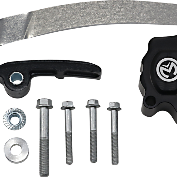 Caracteristicas: CNC-machined aluminum is black anodized and contrast cut for stylish, functional protection Specialized applications guard hydraulic clutch cylinders and feature knockdown bars to keep your chain in check Mounting hardware included Made in the U.S.A.