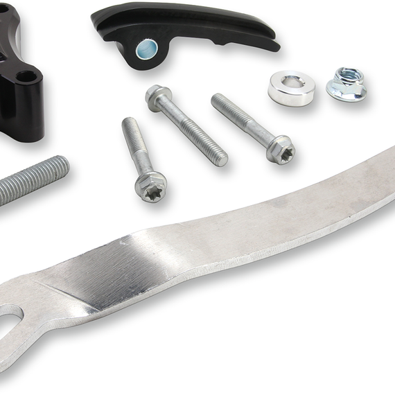 Caracteristicas: CNC-machined aluminum is black anodized and contrast cut for stylish, functional protection Specialized applications guard hydraulic clutch cylinders and feature knockdown bars to keep your chain in check Mounting hardware included Made in the U.S.A.