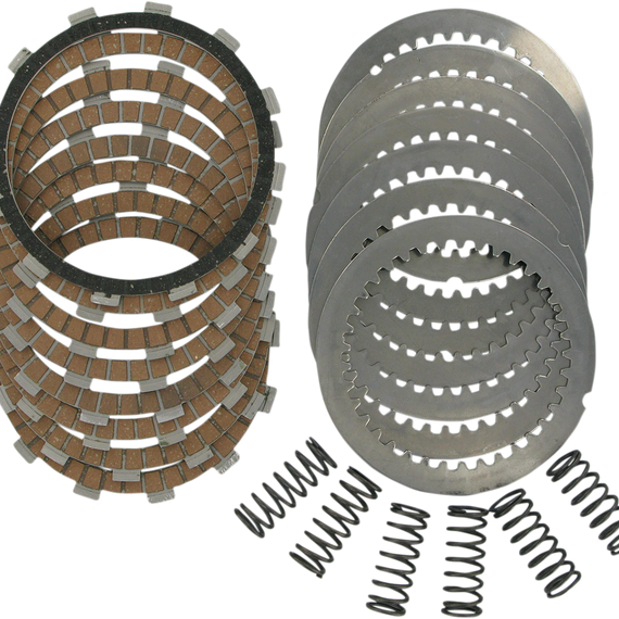 Caracteristicas: Designed to outperform any OEM or aftermarket clutch DPK kits include friction plates, steel drive plates and clutch springs, except when OEM clutch includes reusable diaphragm spring DPK clutch kits come in a foam-lined hard plastic case that protects clutch components from being damaged prior to installation Case can be used to store and transport parts, tools or other items after clutch is installed Come ready to race - no need to presoak plates in oil Designed to ensure ultrasmooth power delivery Exclusive high-heat friction materials for fade-free performance Friction compounds designed to suit off-road and dual-sport bikes More durable than OEM plates Steel drive plates Steel plates won't expand, do not fade or promote clutch swell like stock aluminum plates Long lasting - up to 300% more life than stock plates Increased weight over stock plates adds flywheel effect for aiding starting and traction Will not muddy or contaminate oil Clutch springs Precision-wound using the finest chrome silicone wire Heat-treated and shot-peened for maximum life Individually designed to ensure no slippage with super-strong spring rates Improve feel and ease of clutch operation