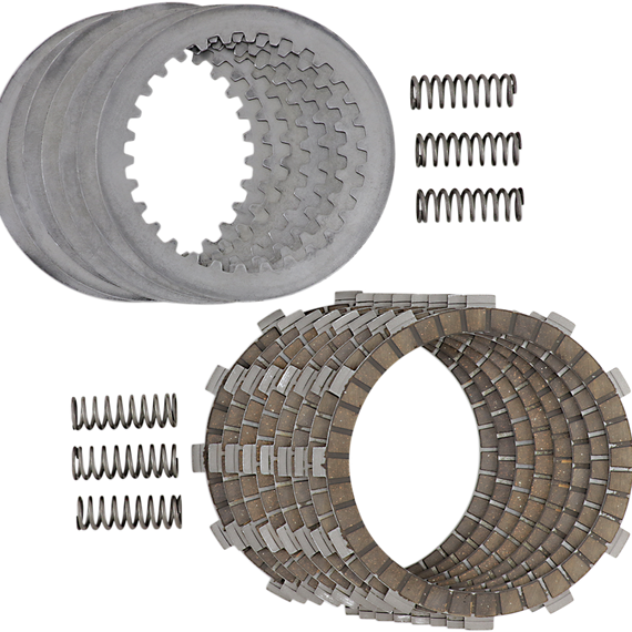 Caracteristicas: Designed to provide extended service life coupled with super smooth power delivery Each kit includes friction plates, steel drive plates, and clutch springs The friction plates are ready to race with no need to soak in oil They are more durable than original equipment and the high heat friction material provides fade-free performance