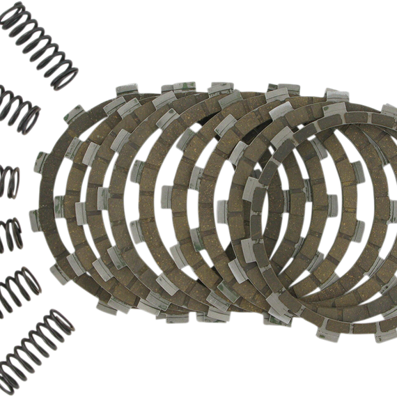 Caracteristicas: Get all the performance without all the fade or slip Friction plates are ready to fit - no need to pre-soak in oil Designed to ensure ultra-smooth power delivery More durable than OEM clutch plates High-heat friction material for fade-free performance Clutch springs are shot-peened for maximum life, heat-treated and precision-wound using only the finest chrome silicon Springs are individually designed for each application to ensure easy operation and great feel at the lever Steel friction plates are precision-made using exacting tolerances Plates are heat-treated for maximum life Will not muddy or contaminate oil
