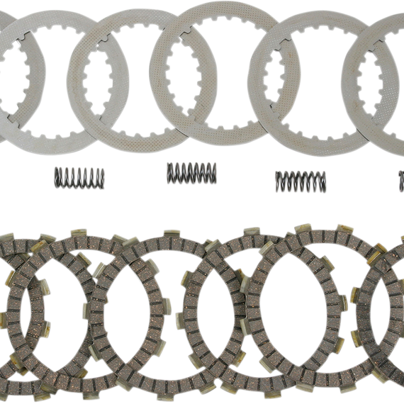 Caracteristicas: Anti-swell, alloy-impregnated heavy-duty cork-based facings for smooth clutch take-up Allow modulation, unlike paper clutches that tend to snatch Complete engine set of friction plates, HD springs and steel separator plates prevent premature driven plate wear, oil muddying and loss of stack height Built with swagged aluminum carriers that spread the load on the clutch basket and prevent clutch basket "dogging" 10-15% uprated heavy duty clutch springs Not for use with 100% synthetic oil