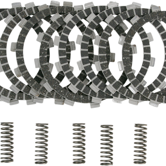 Caracteristicas: Get all the performance without all the fade or slip Friction plates are ready to fit - no need to pre-soak in oil Designed to ensure ultra-smooth power delivery More durable than OEM clutch plates High-heat friction material for fade-free performance Clutch springs are shot-peened for maximum life, heat-treated and precision-wound using only the finest chrome silicon Springs are individually designed for each application to ensure easy operation and great feel at the lever Steel friction plates are precision-made using exacting tolerances Plates are heat-treated for maximum life Will not muddy or contaminate oil