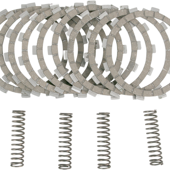 Caracteristicas: Get all the performance without all the fade or slip Friction plates are ready to fit - no need to pre-soak in oil Designed to ensure ultra-smooth power delivery More durable than OEM clutch plates High-heat friction material for fade-free performance Clutch springs are shot-peened for maximum life, heat-treated and precision-wound using only the finest chrome silicon Springs are individually designed for each application to ensure easy operation and great feel at the lever Steel friction plates are precision-made using exacting tolerances Plates are heat-treated for maximum life Will not muddy or contaminate oil