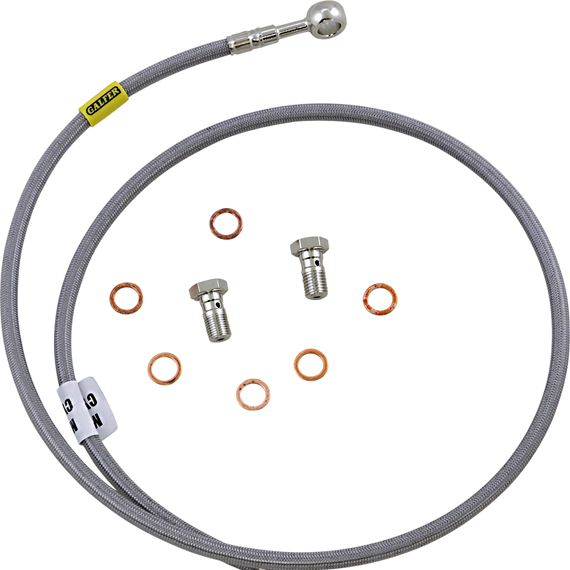 Caracteristicas: Stainless Steel lines are typically the first upgrade you should make Stock rubber lines will break down and expand, causing a spongy feel or worse. Steel lines eliminate expansion which results in consistent feel and performance Made with only DuPont virgin grade PTFE (Polytetrafluoroethylene) inner core 64 strand braid Includes all mounting components, extra washers, and line end labeling, and bike specific installations R&D and manufacturing done in the US