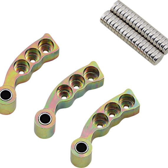 Caracteristicas: Easily adjustable with powerful magnets No thread lock or special tools required Superior ramp profile for better performance Includes three arms and magnets 4-Tec 13-18