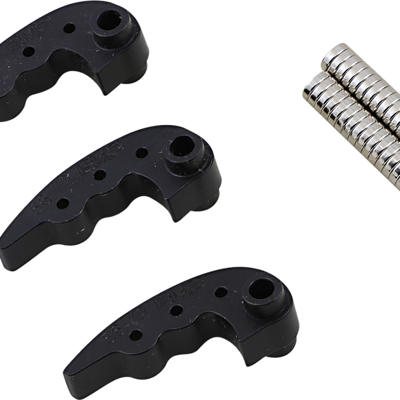 Caracteristicas: Easily adjustable with powerful magnets No thread lock or special tools required Superior ramp profile for better performance Includes three arms and magnets