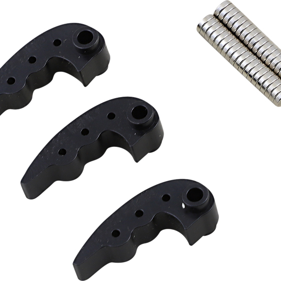 Caracteristicas: Easily adjustable with powerful magnets No thread lock or special tools required Superior ramp profile for better performance Includes three arms and magnets