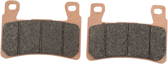 Caracteristicas: Asbestos and nickel-free Uses an organic base material for outstanding friction along with a soft, non-aggressive metal that allows the pad to glide on the disc, providing better control Universal, sintered metal compound that is a great OEM upgrade Offers a powerful initial bite and also a longer pad life Good pad choice for all types of street sport riding conditions Compatible with cast iron, stainless steel, and Carbiron materials and, when used with Braking rotors, provide the greatest control and braking power available