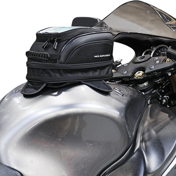 Caracteristicas: Industry leading UltraMax® fabric Maximum UV protection against fading Universal fitment attaches to metal, aluminum, and plastic tanks Dual mounting system hidden under nonslip protective base Includes four shielded magnets and 4-point strap mount system 100% waterproof rain cover included Molded EVA panels allows bag to hold shape Reflective piping and light gray lined interior Expandable for added storage and mesh pocket under lid Expanded dimensions: 10.5" L x 7.5" W x 6.5" H Adjustable internal organizer panel Map panel is touch screen device friendly Charging cable port pass through Lifetime warranty