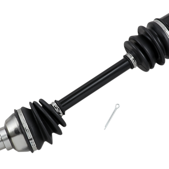 Caracteristicas: Precision machined and heat treated solid chromoly steel center shaft, cages, races and ball bearings up to 35% stronger Highest quality, most reliable, and toughest constant velocity axles on the market Manufactured in a state-of-the-art ISO9001 and TS16949 certified factory Induction heat treated joints packed with high performance moly grease Designed to withstand the most rigorous conditions and terrain High-strength spring steel retaining clips (where required) Torture tested to failure to ensure maximum durability Exceed OEM quality in fit, form and function Secure stainless steel dust boot clamps Fully assembled for easy installation Precision rolled splines and threads