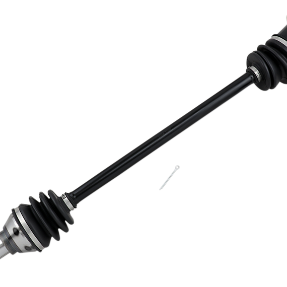 Caracteristicas: Precision machined and heat treated solid chromoly steel center shaft, cages, races and ball bearings up to 35% stronger Highest quality, most reliable, and toughest constant velocity axles on the market Manufactured in a state-of-the-art ISO9001 and TS16949 certified factory Induction heat treated joints packed with high performance moly grease Designed to withstand the most rigorous conditions and terrain High-strength spring steel retaining clips (where required) Torture tested to failure to ensure maximum durability Exceed OEM quality in fit, form and function Secure stainless steel dust boot clamps Fully assembled for easy installation Precision rolled splines and threads