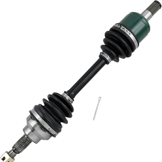 Caracteristicas: Precision machined and heat treated solid chromoly steel center shaft, cages, races and ball bearings up to 35% stronger Highest quality, most reliable, and toughest constant velocity axles on the market Manufactured in a state-of-the-art ISO9001 and TS16949 certified factory Induction heat treated joints packed with high performance moly grease Designed to withstand the most rigorous conditions and terrain High-strength spring steel retaining clips (where required) Torture tested to failure to ensure maximum durability Exceed OEM quality in fit, form and function Secure stainless steel dust boot clamps Fully assembled for easy installation Precision rolled splines and threads